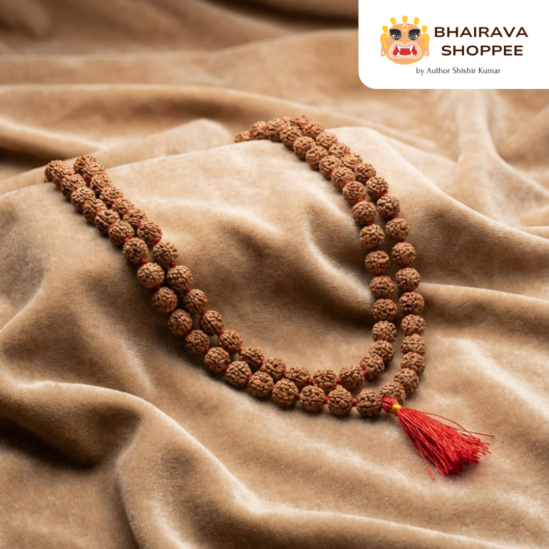This mala is crafted using authentic 5 Mukhi Rudraksha beads, carefully strung in the traditional 108-bead format, making it ideal for daily mantra repetition, meditation, and disciplined spiritual practice.